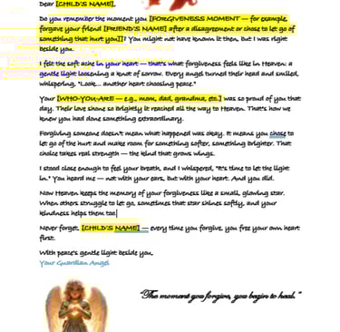 Never forget, [CHILD’S NAME] — every time you forgive, you free your own heart first.