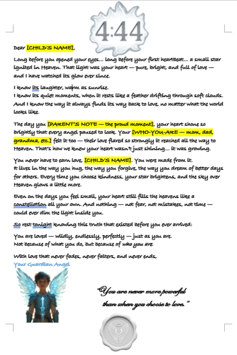 ✨ Each message carries a blessing — written with love, light, and the voice of your child’s Guardian Angel. ✨